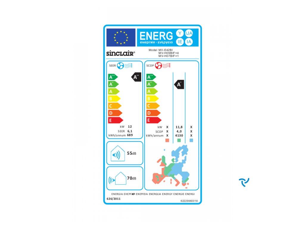 Energetická třída | Chlazení / topení | A++ / A+ | - |